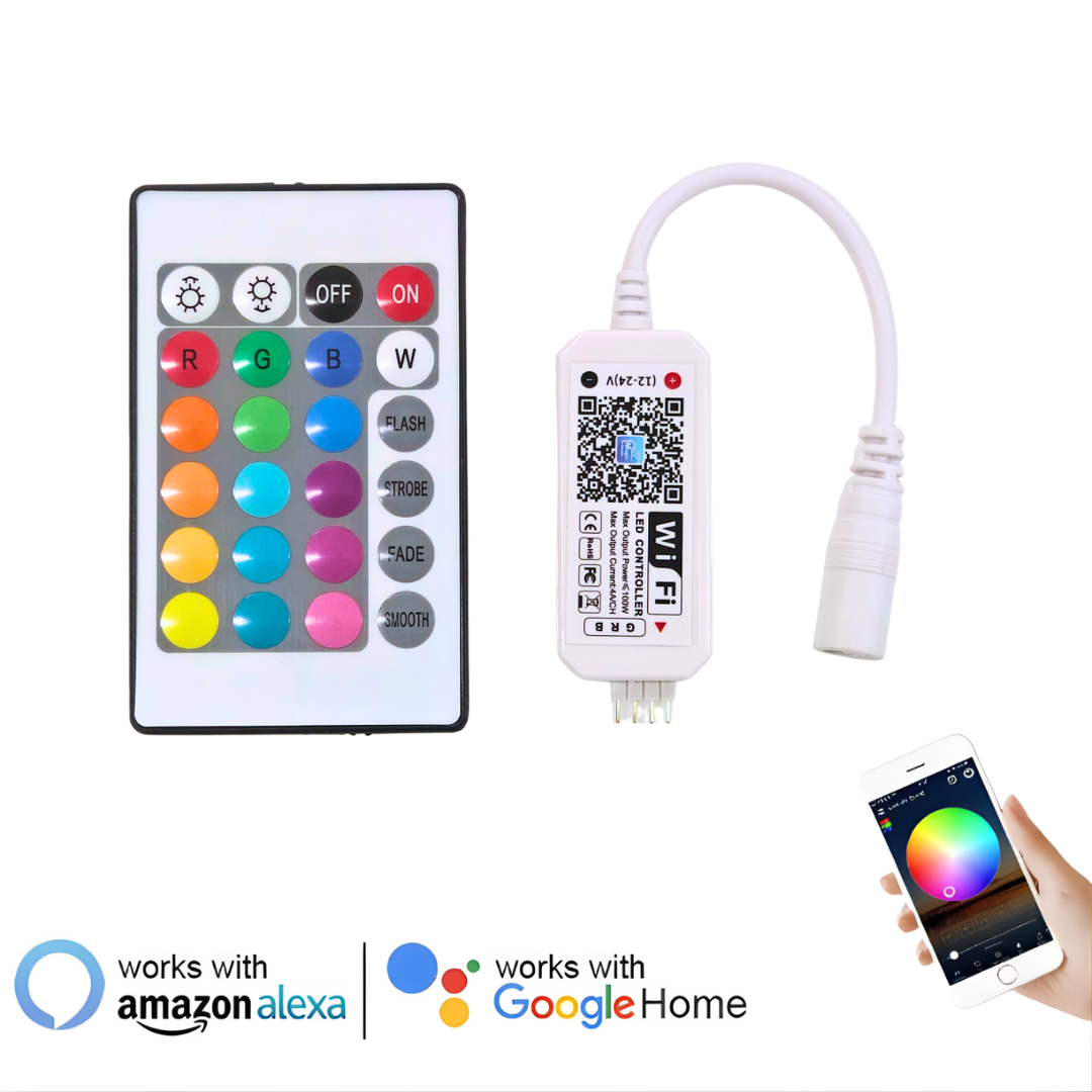 Simplify your lighting experience with the Smart WiFi RGB Strip Controller, designed to make controlling your 12V RGB LED strip lights easier and more convenient. With compatibility for Alexa and Google Home, this controller lets you control your lights using just your voice, making your home smarter and more dynamic.