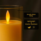 Acrylic Golden Glass LED Moving Flame Pillar Candle | Elegant & Safe Flameless Lighting