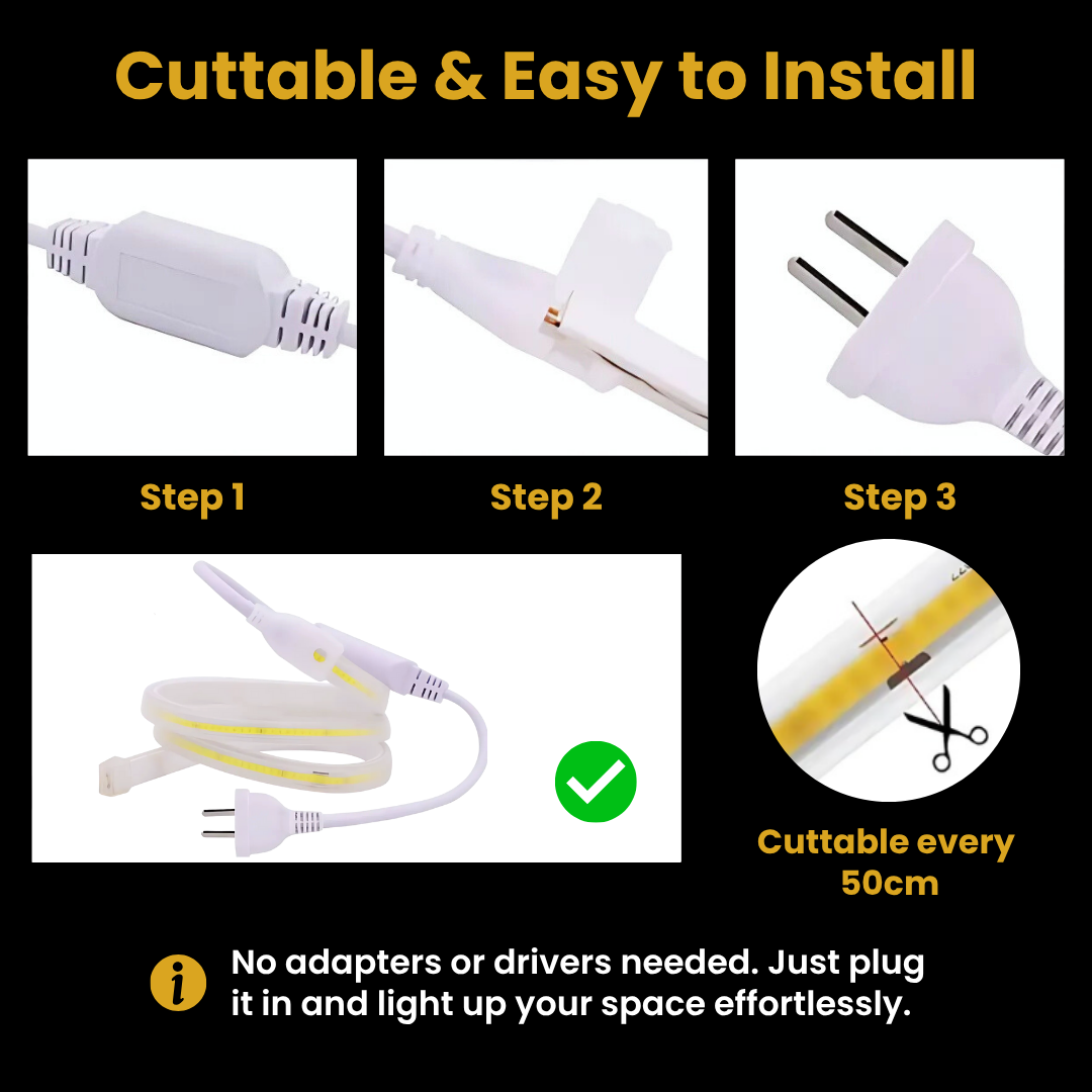 - Cuttable every 50 cm, allowing for tailored lengths without affecting the remaining strip.