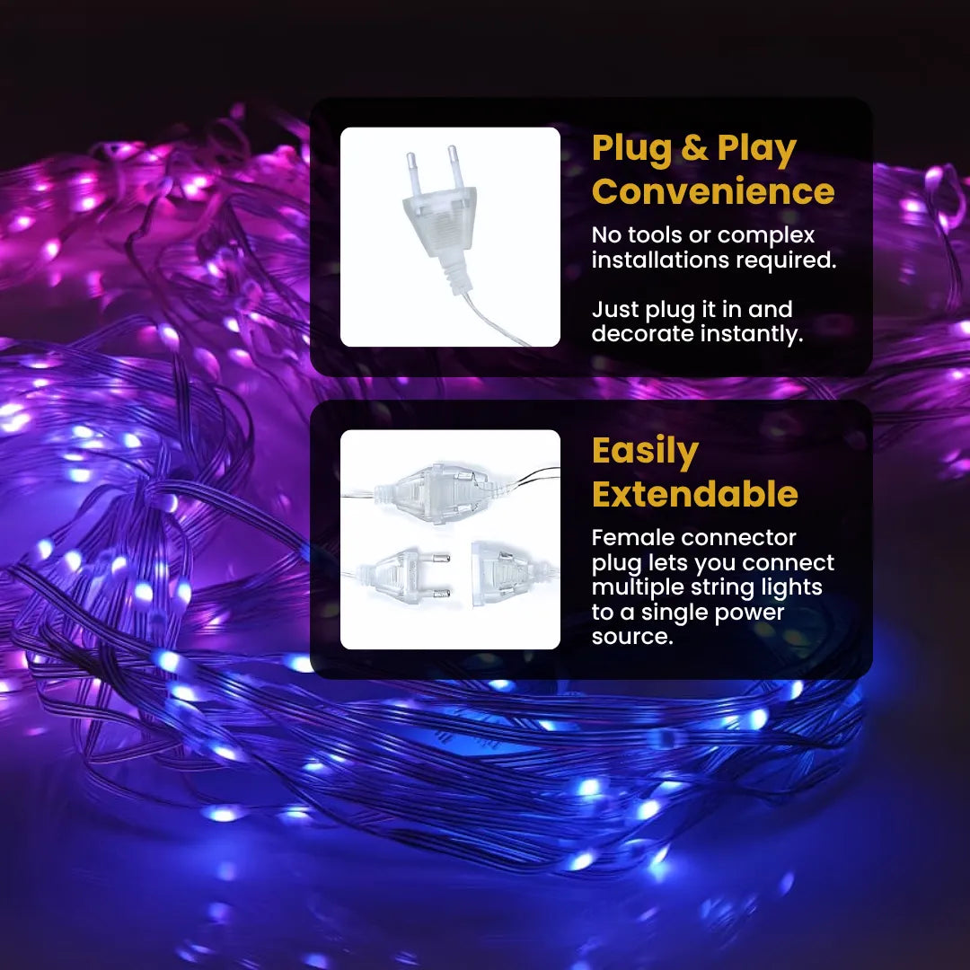 - Energy-Efficient : These lights are designed for your peace of mind. Operating at AC 220v and equipped with a Two-Pin Indian Power Plug, they remain cool to the touch even after hours of use.