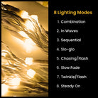 Combination, In waves, Sequential run, Back running flash, Meteor flash, Sequential flash, Gradually change, Steady on.