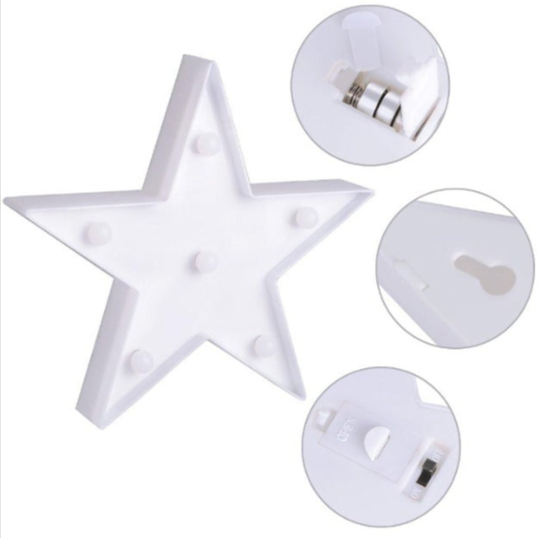 Illuminate your home with the charming Mini Marquee Star Light. Whether placed on your bedside table, mantelpiece, or any corner in your home, this LED star light adds an elegant, warm glow to your room. Perfect for creating a cozy atmosphere in your living room, baby room, or bedroom, this star-shaped light brings a delightful ambiance.