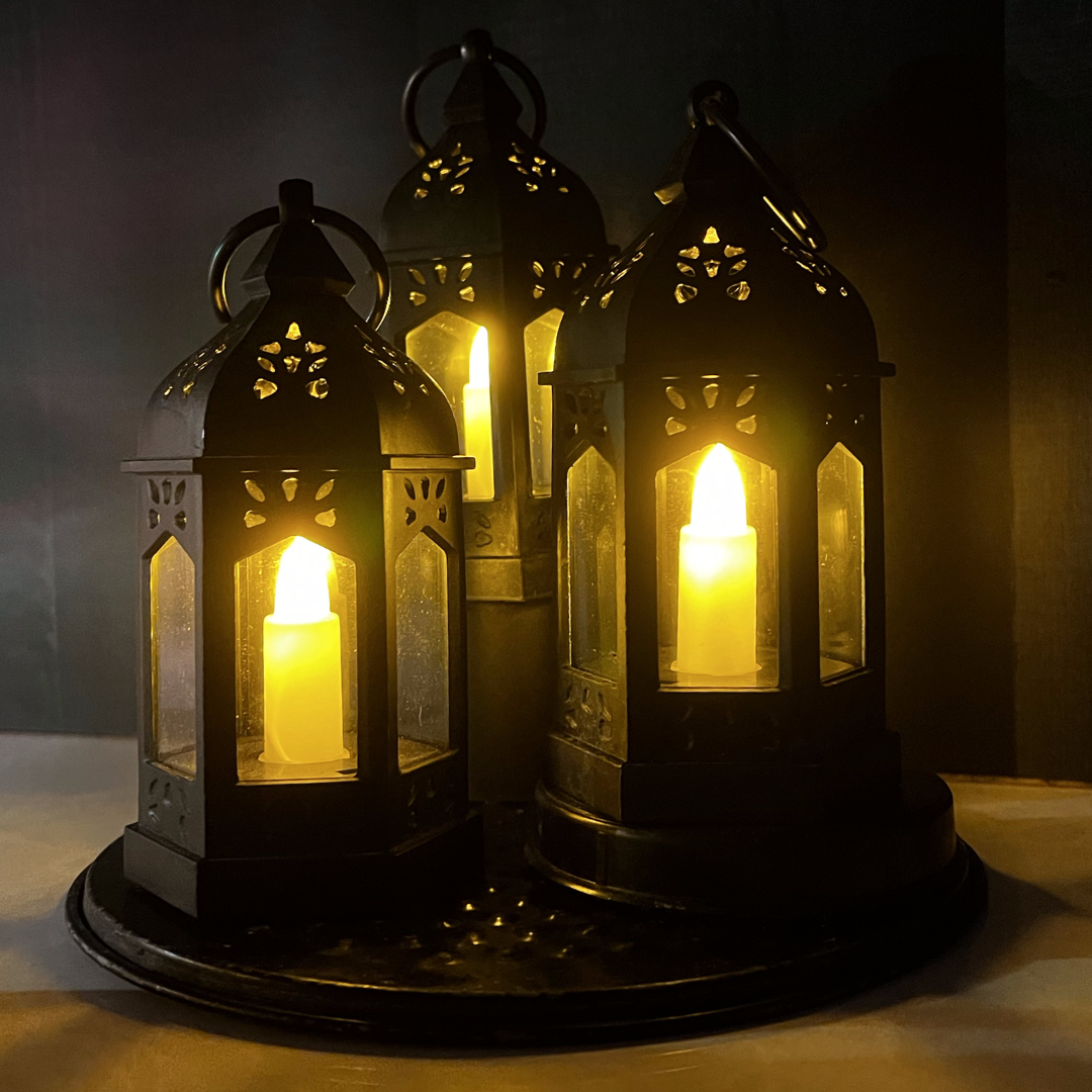 Mini Moroccan Decorative Lantern with LED Candle | Pack of 3