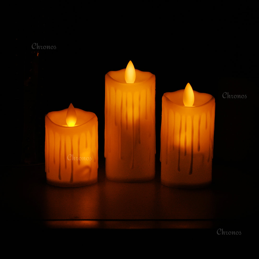 Designed with a classic “dripping wax” effect, these flameless candles add a timeless touch to your Diwali lights, Christmas centerpieces, wedding décor, or daily home ambiance—while staying cool and safe for any setting.