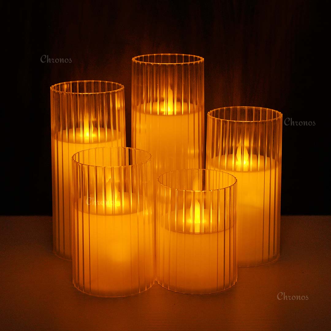 Bring a touch of timeless elegance to your home with the Pleated Acrylic Glass LED Moving Flame Pillar Candle from Chronos Lights. Designed with a premium pleated acrylic body, this flameless candle offers a textured, high-end look that beautifully diffuses light—while being lightweight, durable, and shatter-resistant. It’s the perfect choice for both festive decorations and everyday ambience.
