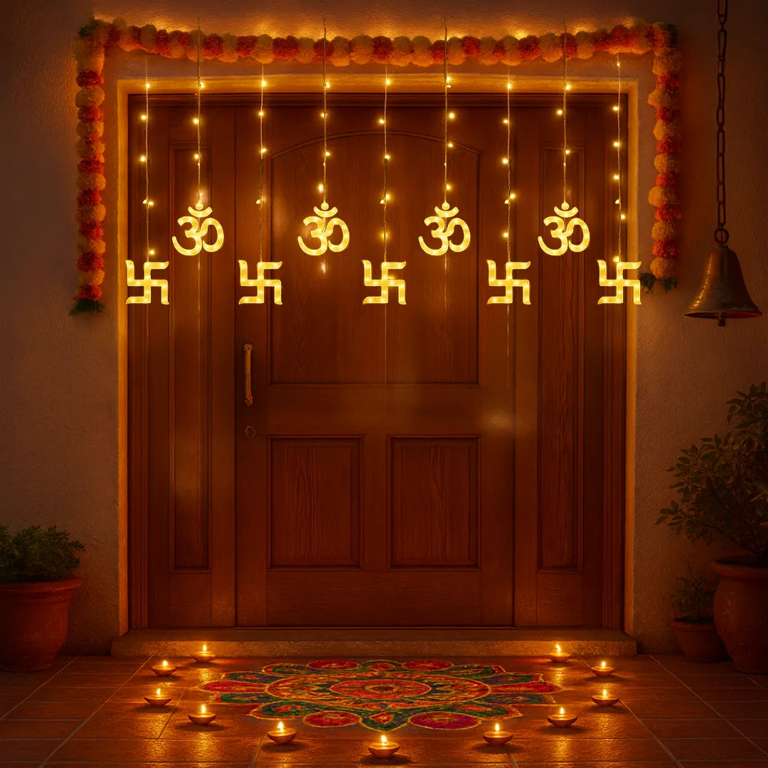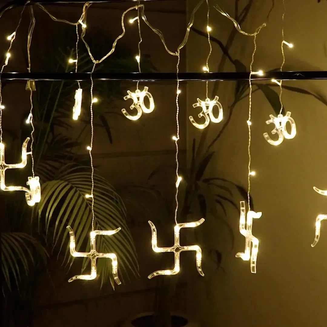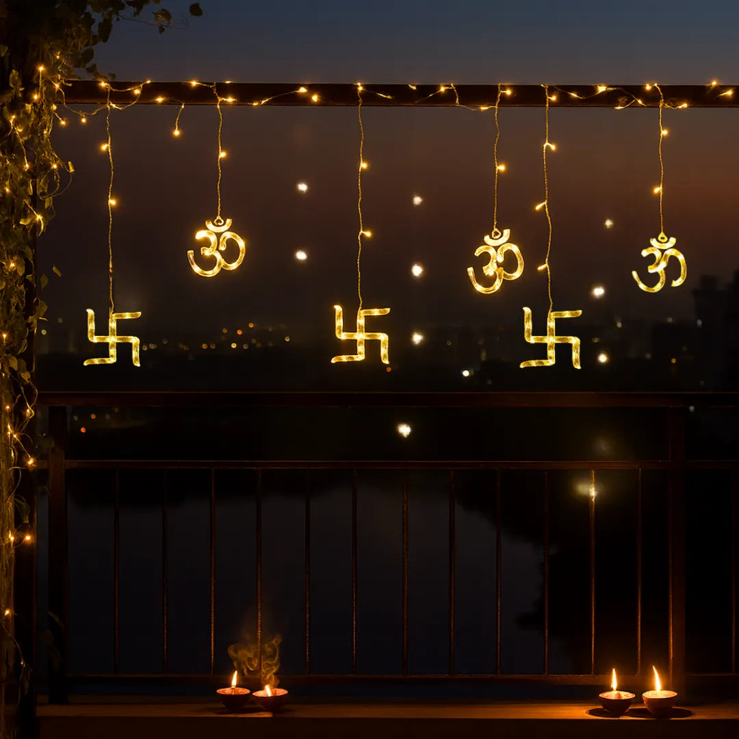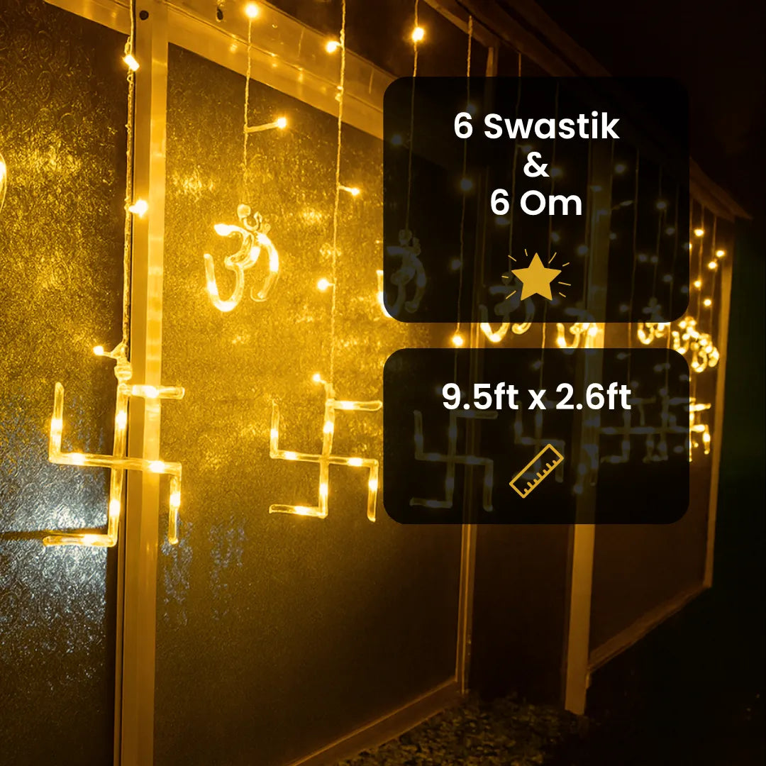 OM Swastik Curtain Lights | Yellow LED – Diwali Decorative Lights