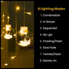 Add a touch of whimsy to your space with these Wish Ball Curtain Lights. Perfect for decorating your bedroom, balcony, or any room, these lights offer a warm and inviting glow. The 8 flashing function modes provide dynamic lighting effects that are ideal for Christmas, Diwali, or any special occasion. Their unique design with 12 wish balls creates a charming and festive atmosphere wherever they’re placed.
