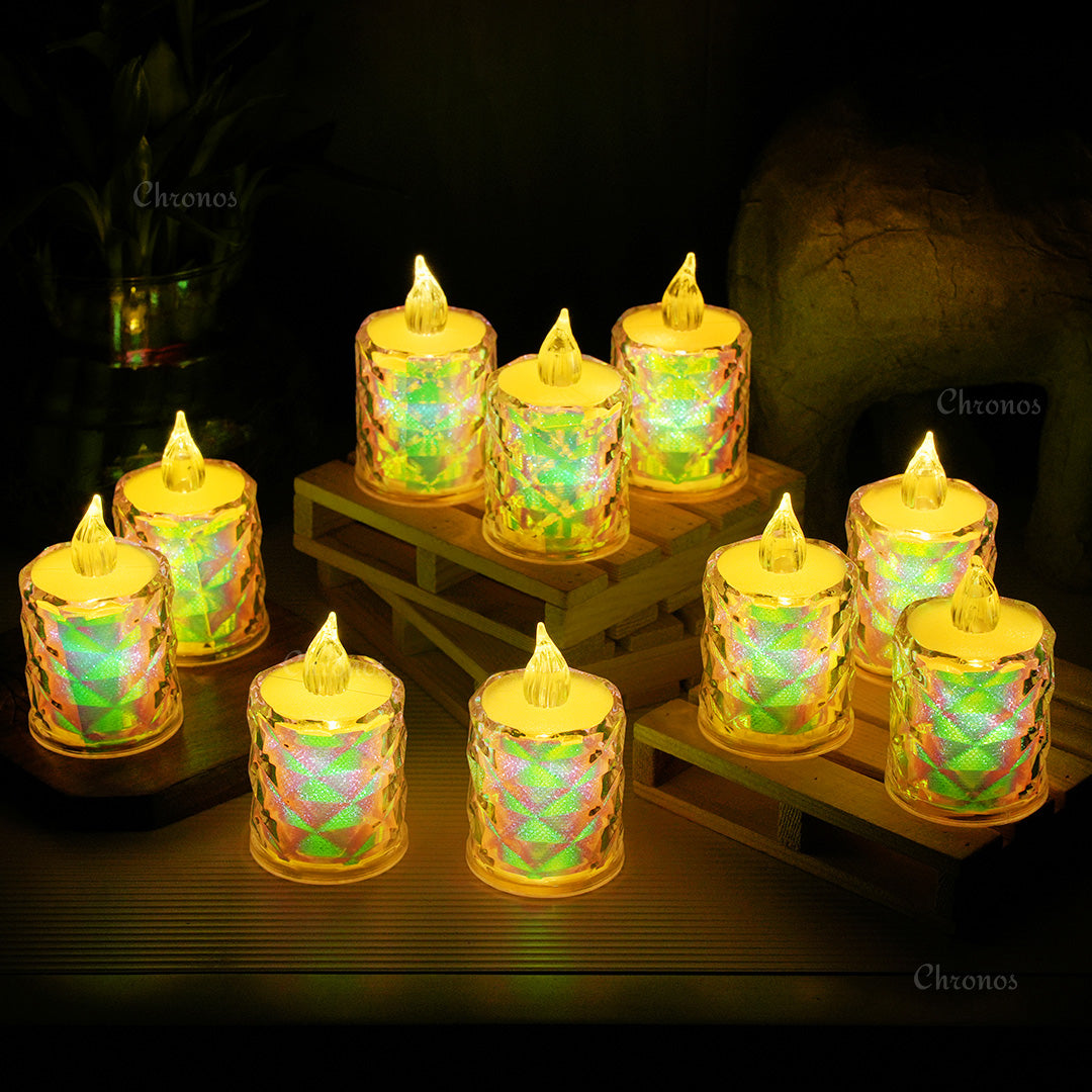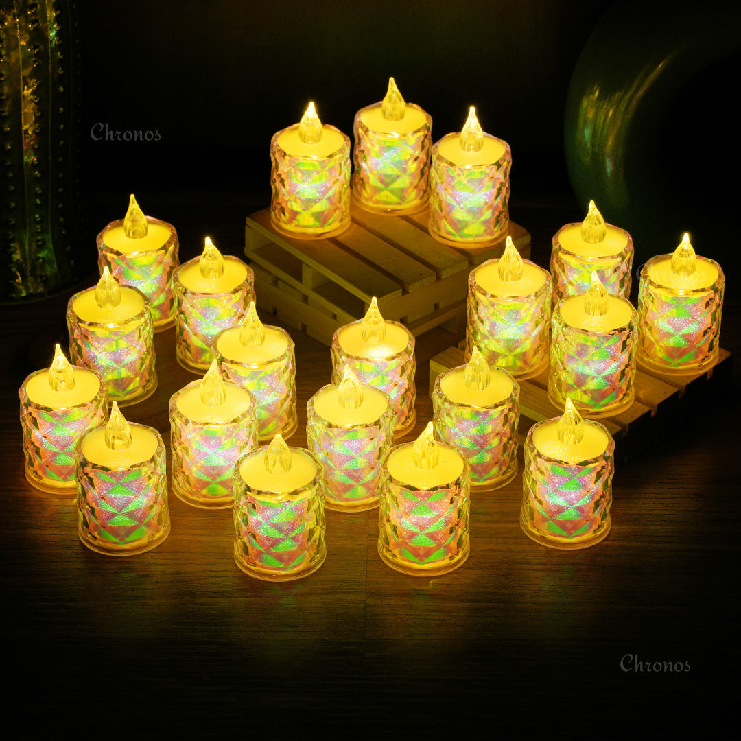 Add a radiant, colorful glow to your celebrations and home décor with the Crystal Diamond Reflection LED Tealight Candle | Rainbow. These flameless and smokeless LED candles provide the beauty of a real candle with the convenience of modern technology, making them an excellent choice for creating a warm, inviting atmosphere during any special occasion.