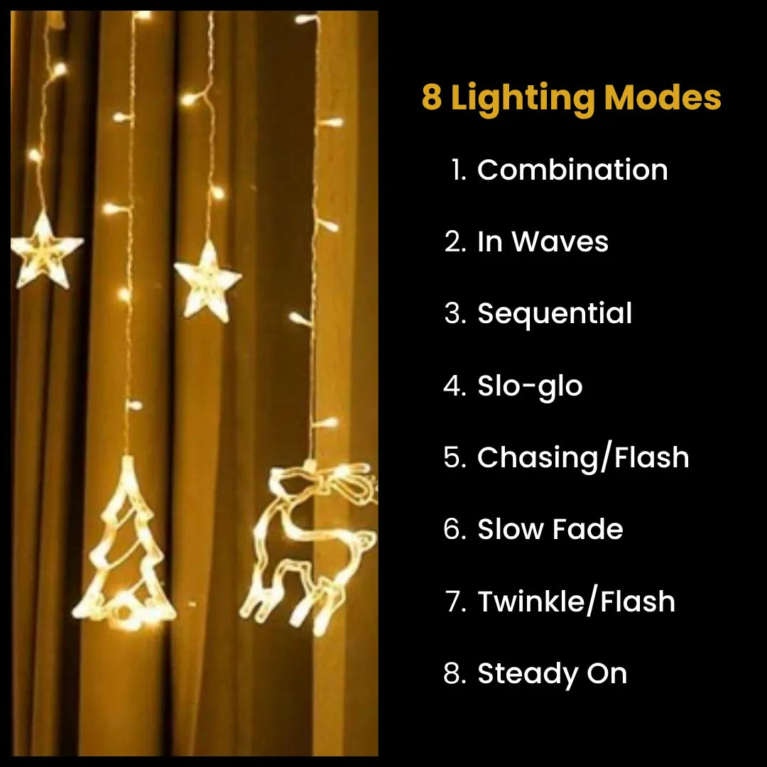 Add a festive and magical atmosphere to your home this season with Christmas Curtain Lights. Perfect for creating holiday cheer at home or during any special occasion.