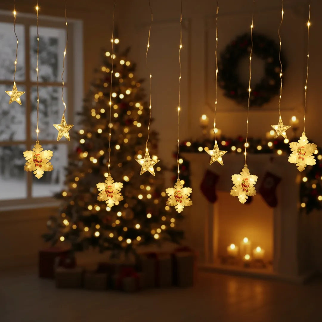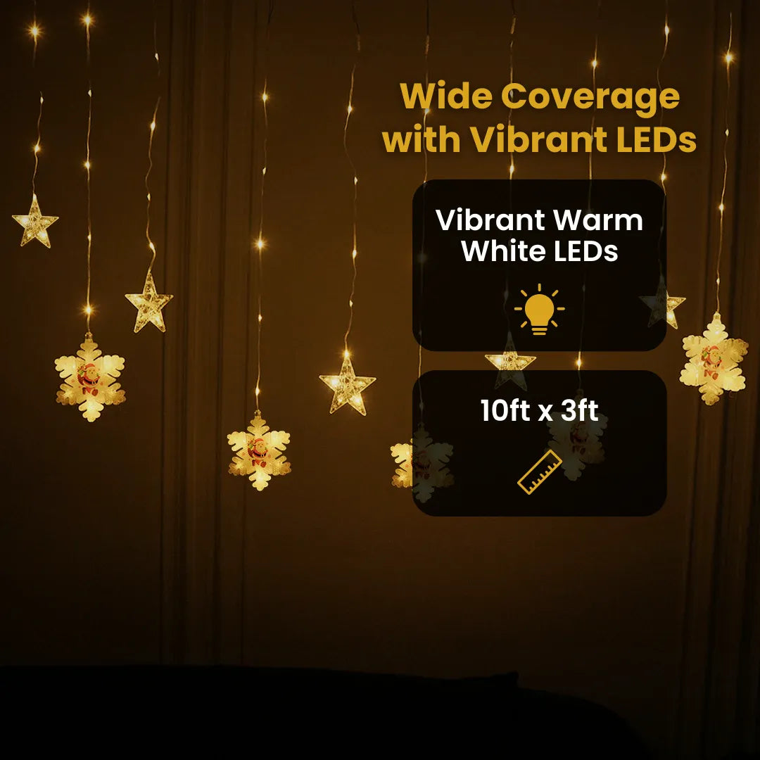 • 1 x Christmas Snowflakes + Stars Curtain Light
