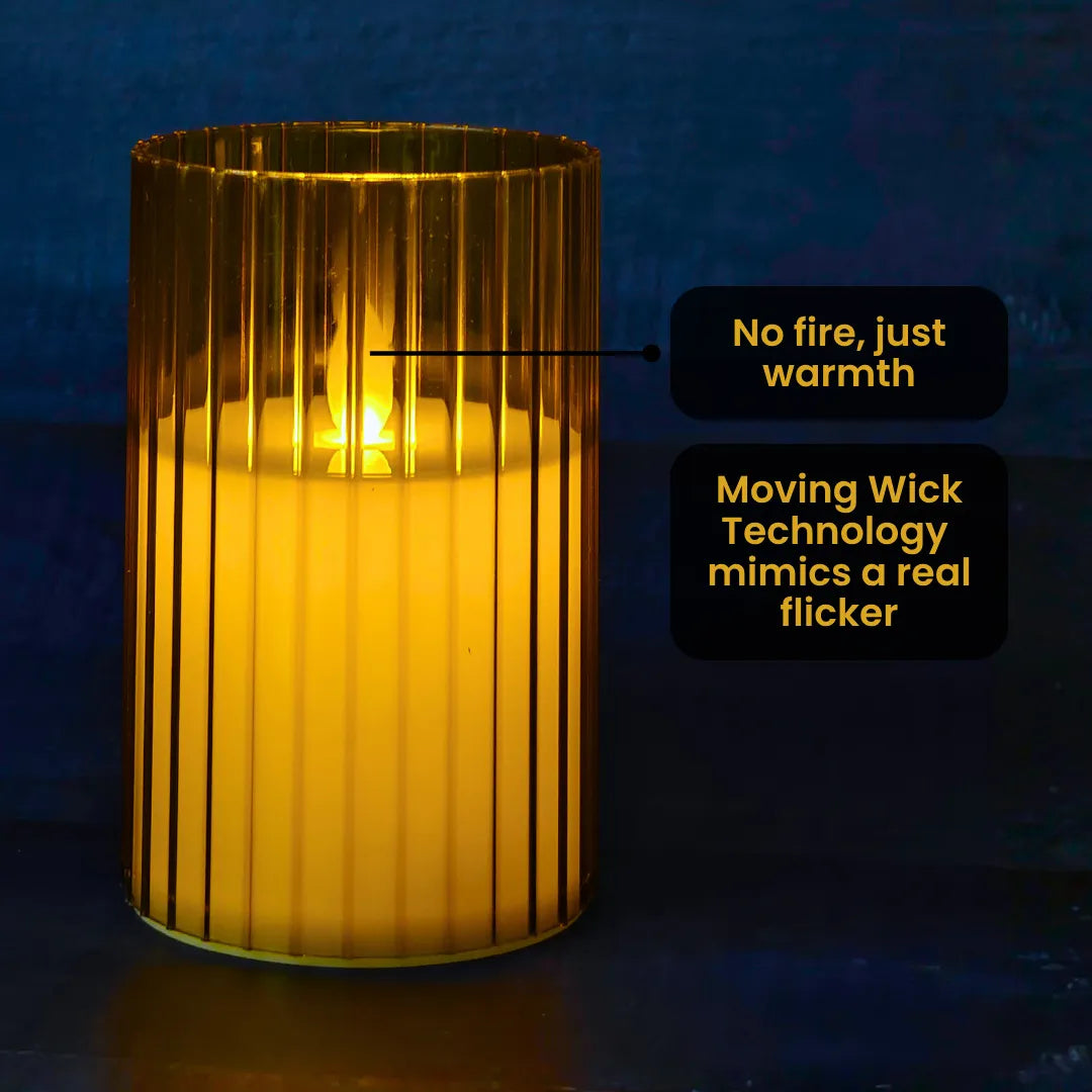With Moving Wick Technology, the flickering flame looks strikingly realistic, casting a cozy glow without the dangers of an open flame. Whether you’re lighting up your home for Diwali, Christmas, or an intimate celebration, this pleated candle is a stylish and safe alternative to traditional wax candles.