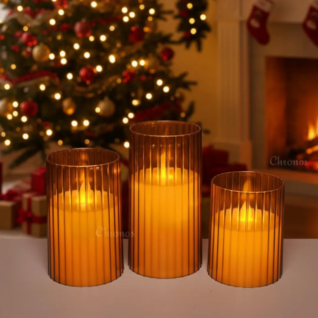 Bring a touch of timeless elegance to your home with the Pleated Acrylic Glass LED Moving Flame Pillar Candle from Chronos Lights. Designed with a premium pleated acrylic body, this flameless candle offers a textured, high-end look that beautifully diffuses light—while being lightweight, durable, and shatter-resistant. It’s the perfect choice for both festive decorations and everyday ambience.