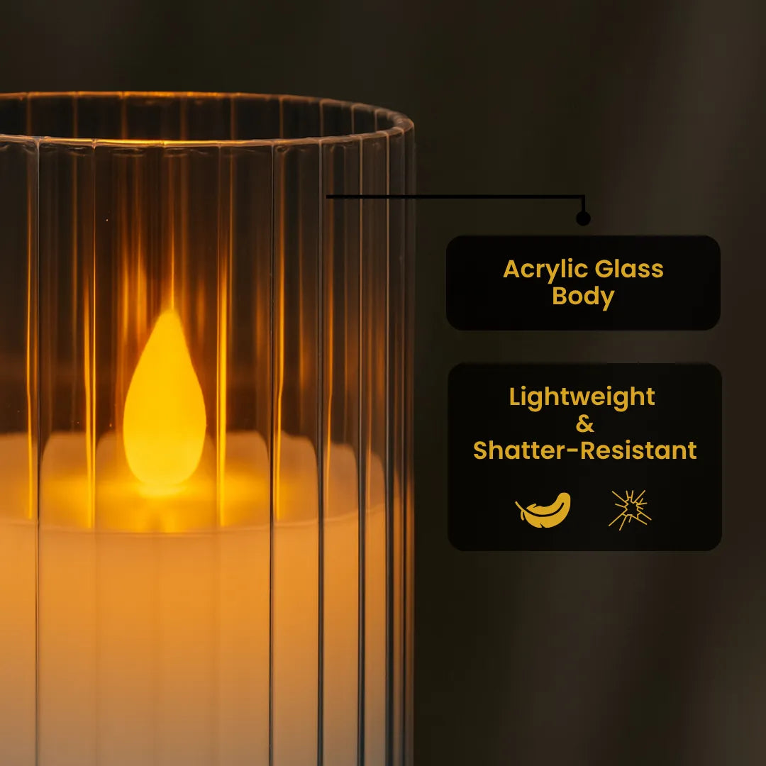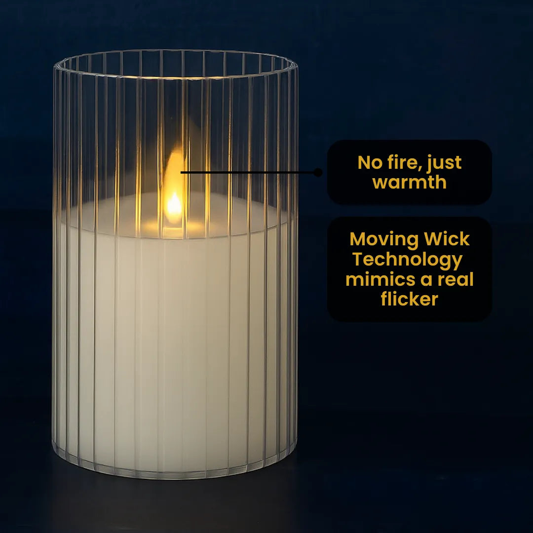 Pleated Acrylic Glass LED Moving Flame Pillar Candle | Transparent
