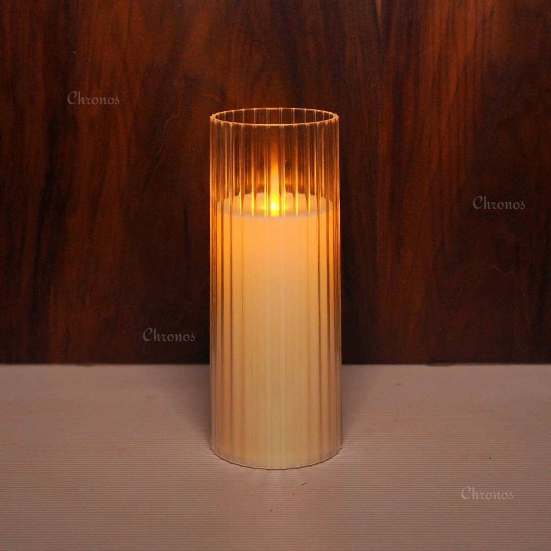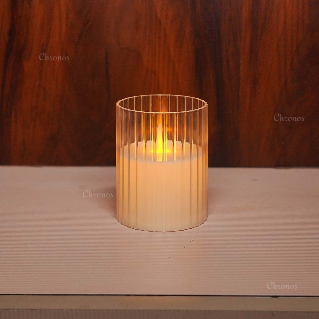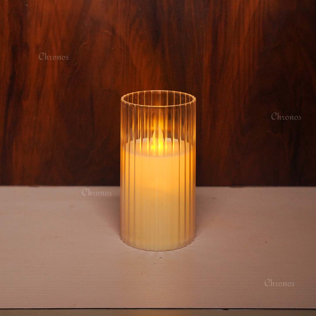Bring a touch of timeless elegance to your home with the Pleated Acrylic Glass LED Moving Flame Pillar Candle from Chronos Lights. Designed with a premium pleated acrylic body, this flameless candle offers a textured, high-end look that beautifully diffuses light—while being lightweight, durable, and shatter-resistant. It’s the perfect choice for both festive decorations and everyday ambience.