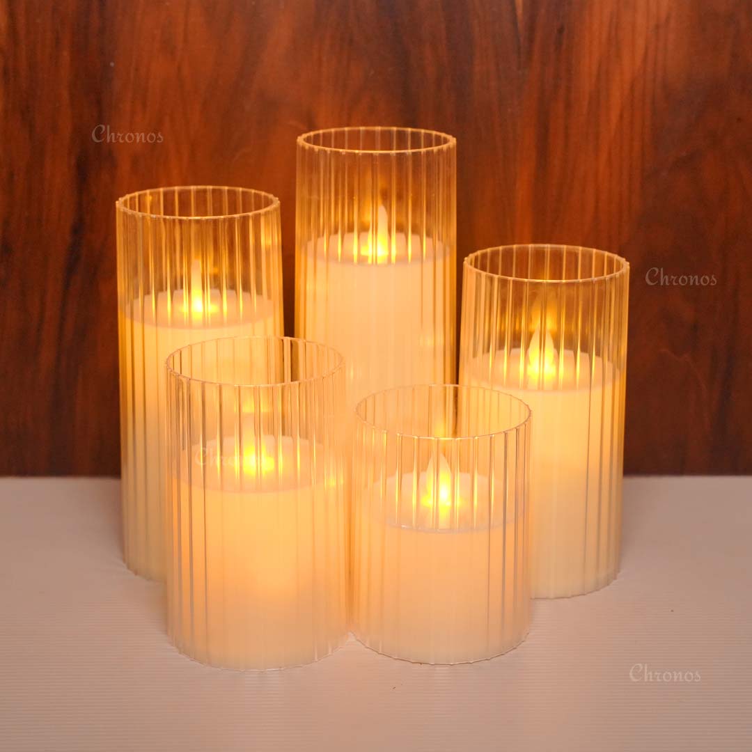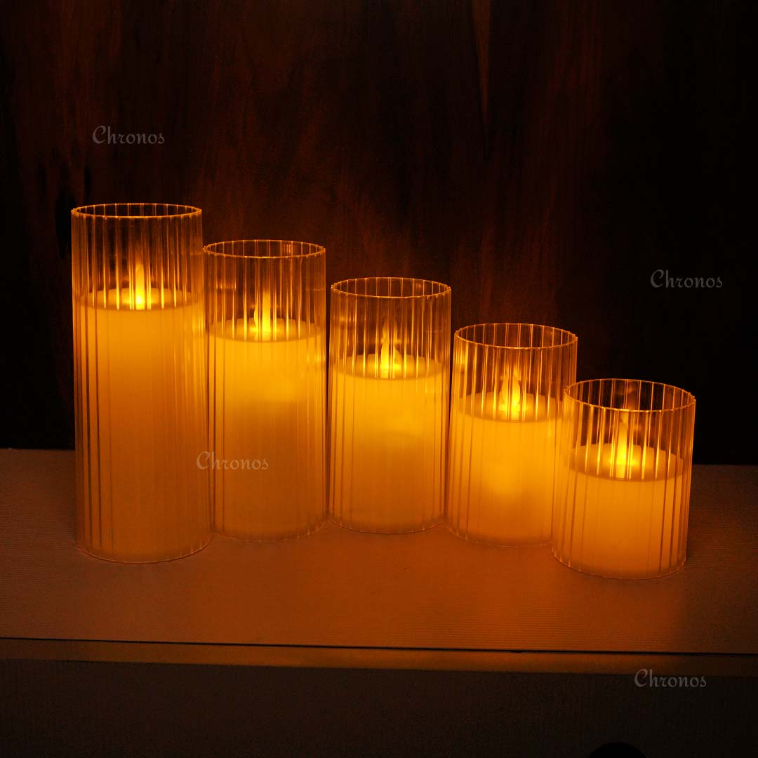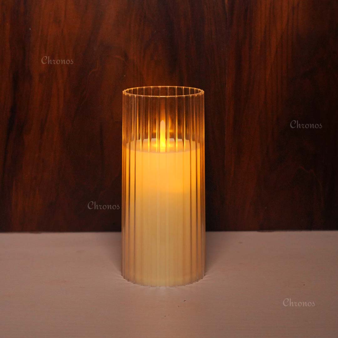 Bring a touch of timeless elegance to your home with the Pleated Acrylic Glass LED Moving Flame Pillar Candle from Chronos Lights. Designed with a premium pleated acrylic body, this flameless candle offers a textured, high-end look that beautifully diffuses light—while being lightweight, durable, and shatter-resistant. It’s the perfect choice for both festive decorations and everyday ambience.