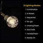 With 8 pre-set lighting modes, you can set the perfect atmosphere — from gentle, steady illumination for relaxed evenings to lively flashes for festive occasions. The simple plug-and-play design makes setup quick and hassle-free, so your space transforms instantly.