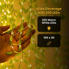 With 10 cascading string drops and 200 warm white LEDs, these lights are perfect for Ganpati decoration, weddings, parties, or cozy home interiors. The natural green vines provide a refreshing outdoor vibe, while the LEDs add a warm festive glow.