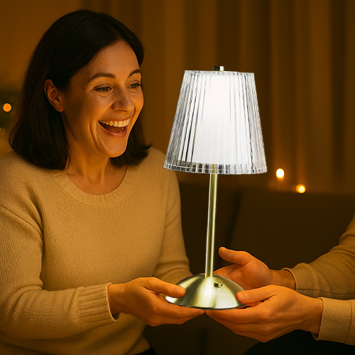 A modern cordless LED lamp with a crystal-cut design that adds elegance and charm to any space.