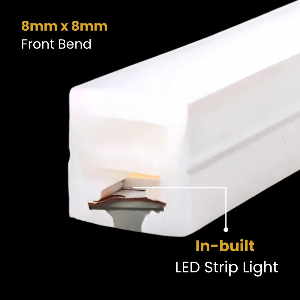 8mmx8mm Flexible Neon Silicone Profile Light - Front Bend IP65 24V - 5M