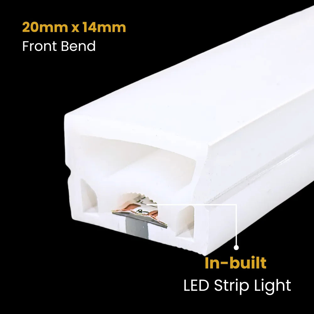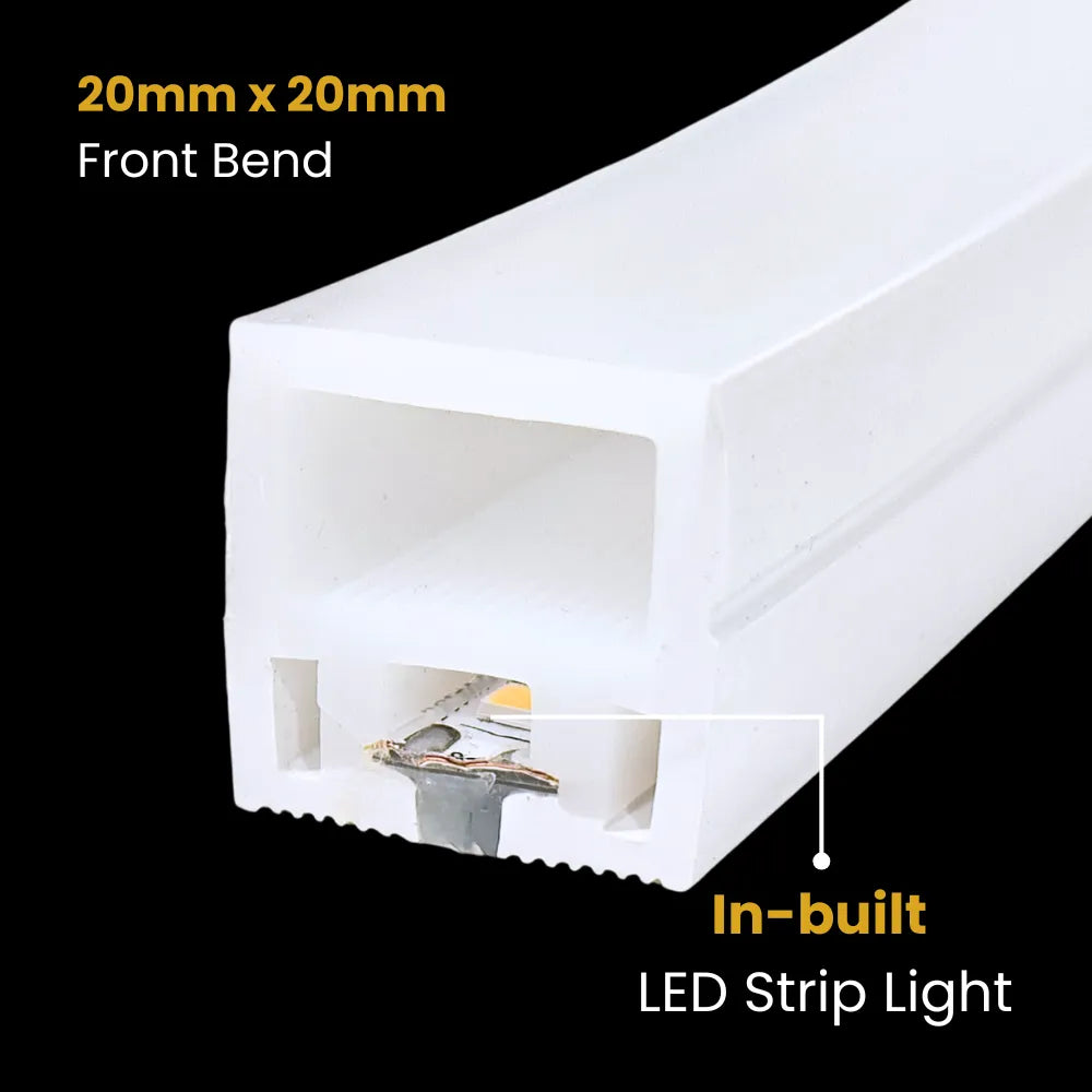 5. 20mm x 20mm Flexible Silicone Neon Profile Light - Front Bend IP65 24V (5M)