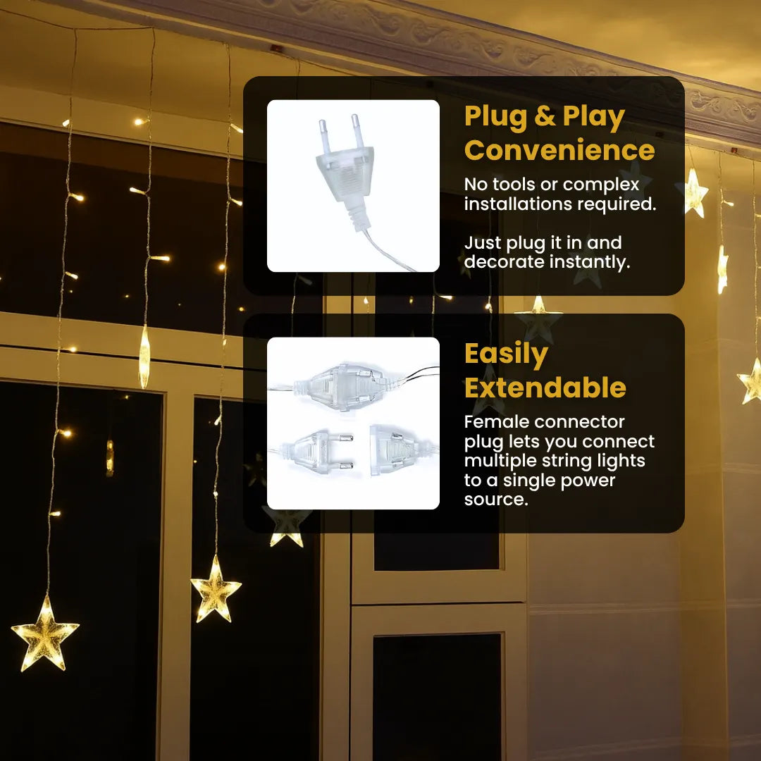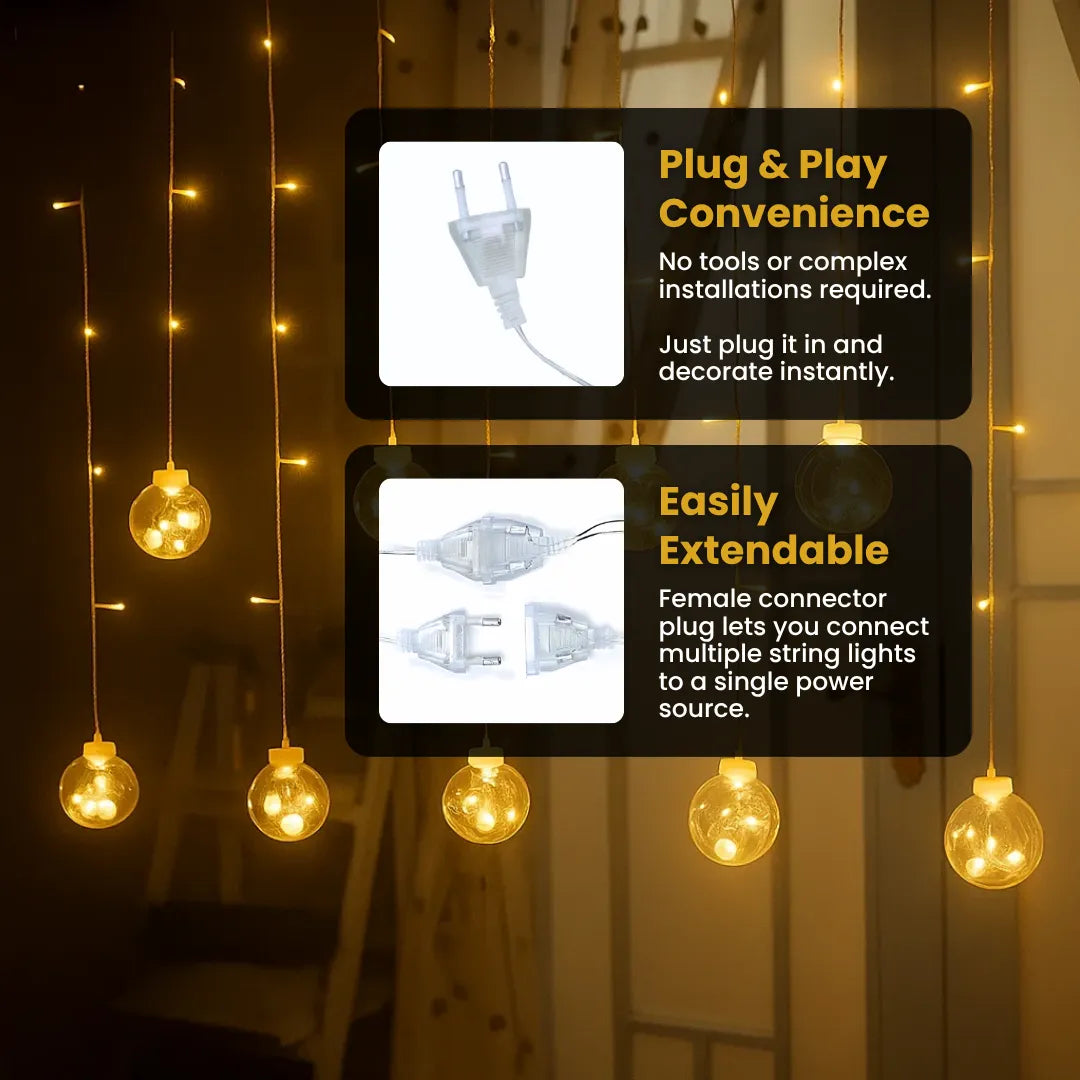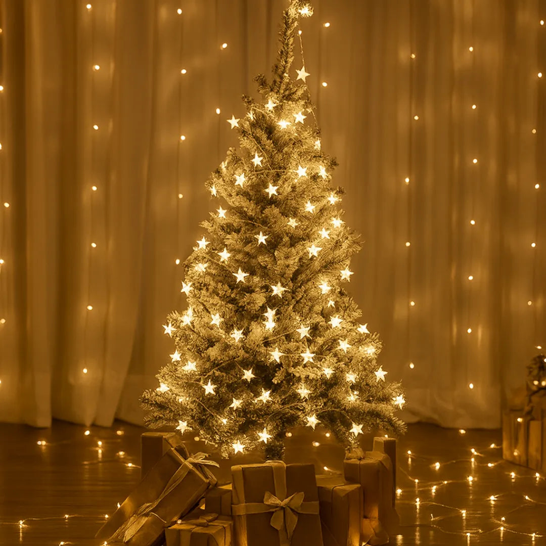 String lights are small LED bulbs connected along a flexible wire, perfect for decorating trees, windows, walls, and outdoor spaces with a warm, festive glow.