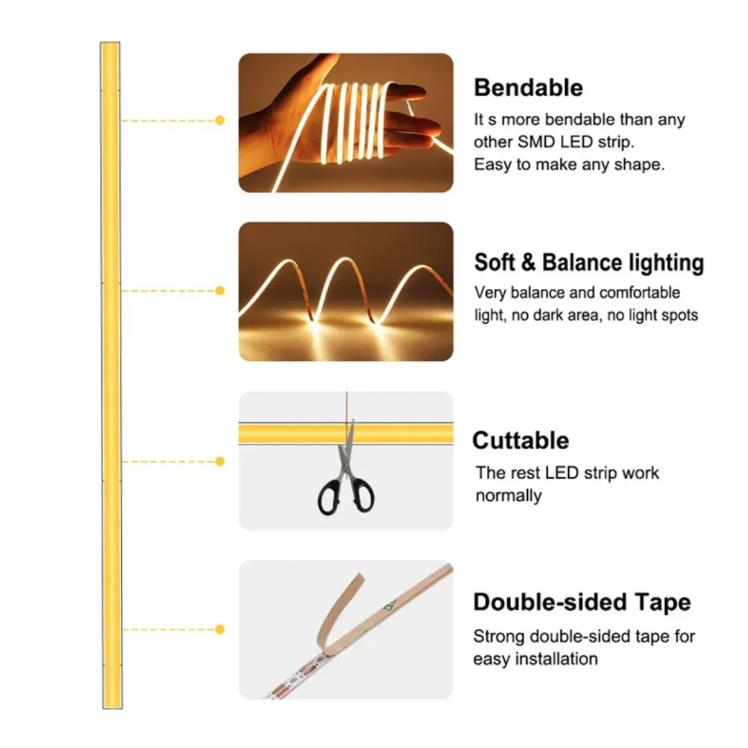 🛒 Don’t wait—upgrade your lighting today with the RGBIC COB LED Strip! Click “Add to Cart” now to experience the ultimate lighting transformation and unlock endless creative lighting possibilities! ✨.
