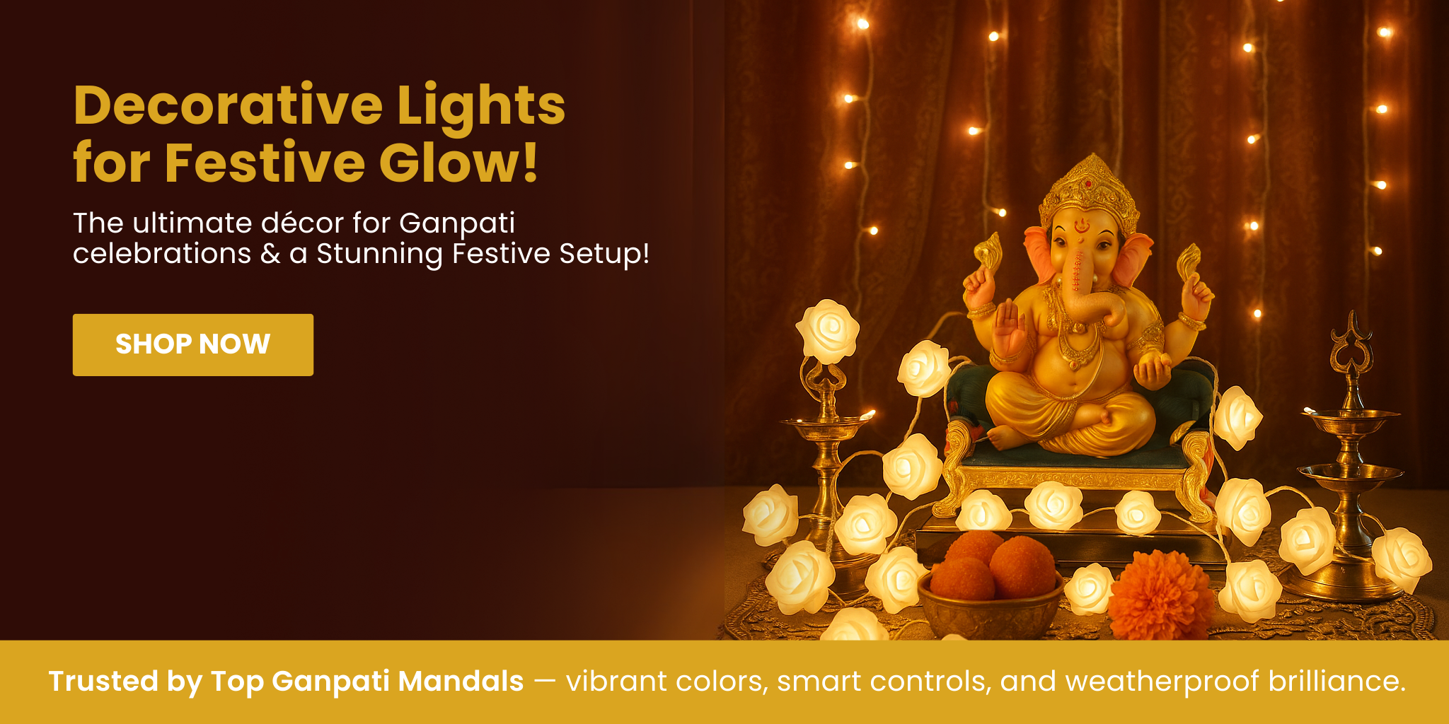 Celebrate Ganesh Chaturthi 2025 in style with our exclusive range of Ganpati decoration lights, LED pooja décor, and mandap lighting kits. From fairy lights to smart LED solutions, brighten your home, balcony, or pandal with festive elegance.