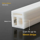 The 12mm x 20mm silicone LED profile is designed to fit side-emitting LED strips up to 12mm in width. It’s compatible with most standard side light LED strips and offers a snug, secure fit for optimal light output.
