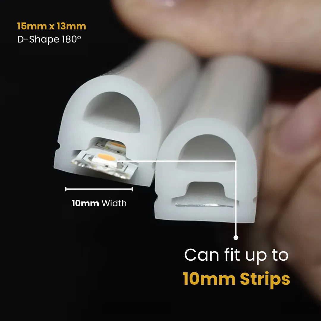D-Shape Neon LED Diffuser Profile – 15x13mm | 180° Side Glow | IP66 Flexible Silicone | For 8mm LED Strips