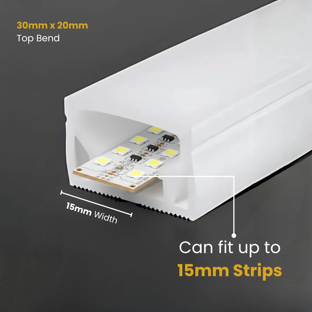 Flexible Silicone Profile for LED Strip Light – 30mm x 20mm (Top Light Luminous) | Soft, Flexible, and Weather-Resistant LED Channel