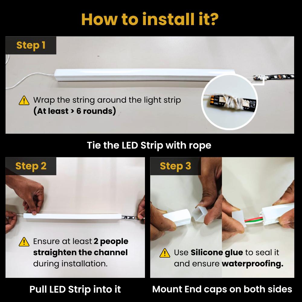 ✅ Yes. With proper sealing using silicone glue and end caps, this profile meets IP66 protection standards.