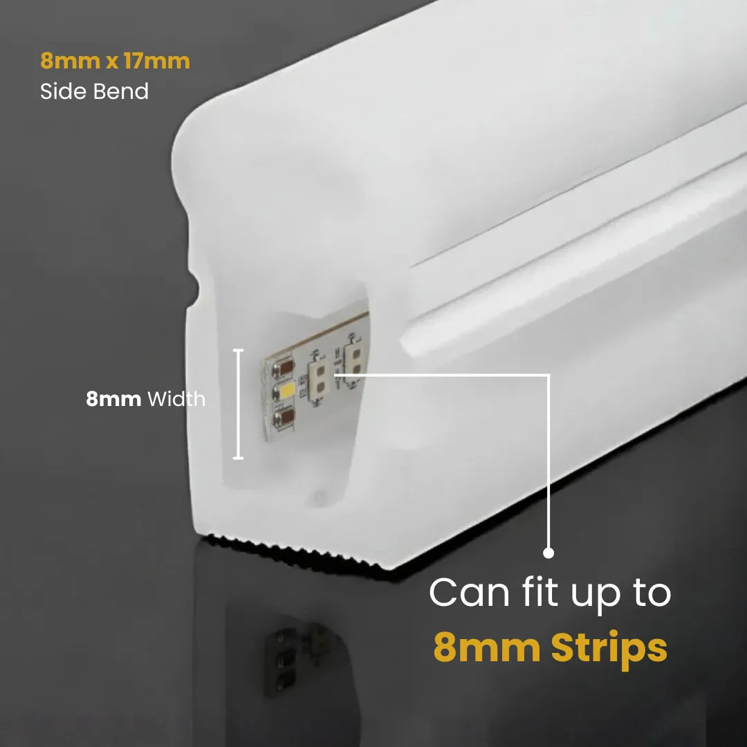 Flexible Silicone Profile for LED Strip Light – 8mm x 17mm (Side Light Luminous) | Compact, Flexible, and Weather-Resistant LED Channel | Durable, Waterproof & Easy to Install
