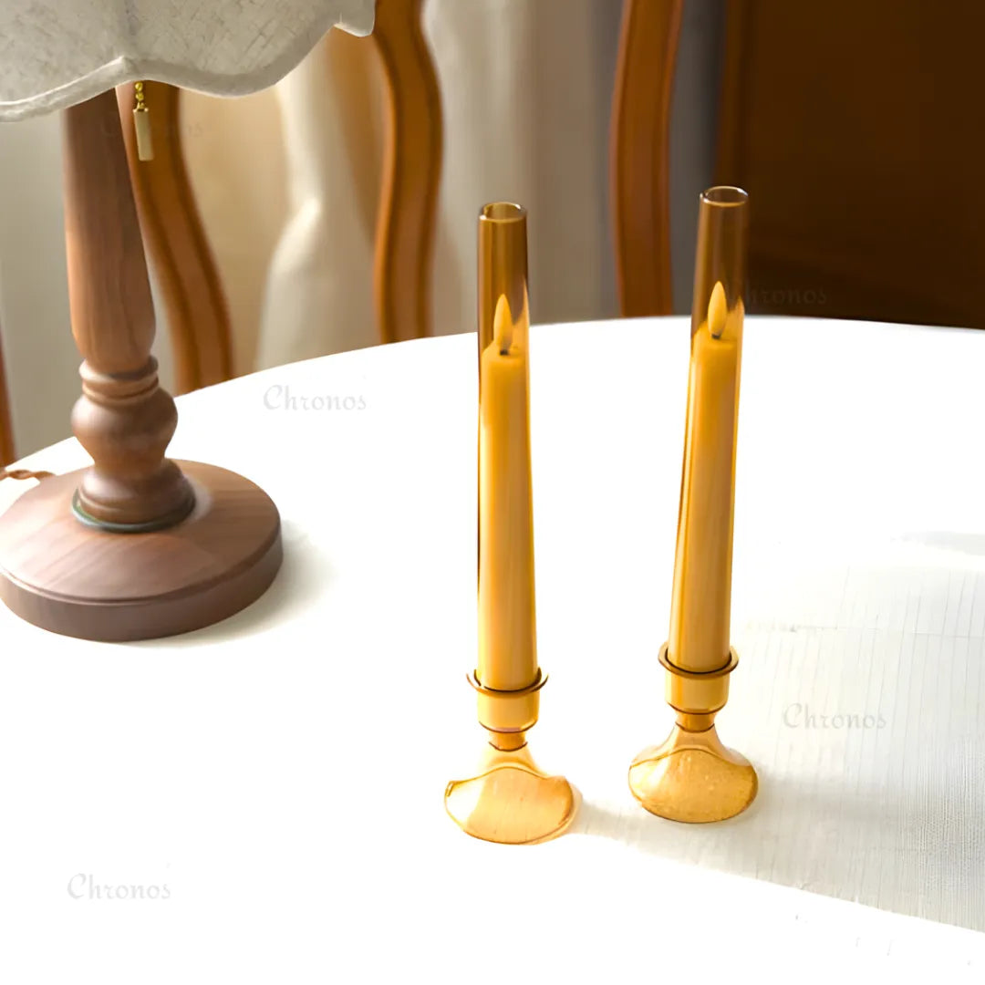 Acrylic Glass LED Taper Candles Set | Flameless Moving Flame Pillar Candles with Remote & Timer
