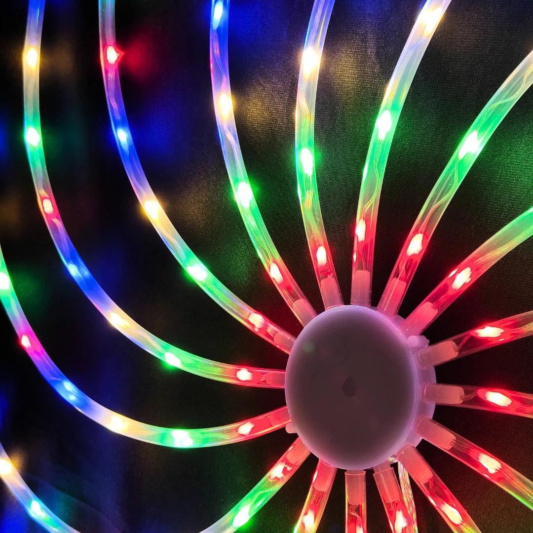 ganpati chakra | ganesh chaturthi chakra light | ganpati murti backdrop decoration | multi-color LED spiral chakra | ganesh utsav halo light | pichwai chakra LED | ganpati stage decoration light | ganpati spiral LED decoration | LED chakra for ganpati