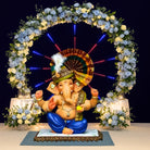 Celebrate Ganesh Chaturthi 2025 with a captivating and devotional chakra backdrop that enhances the beauty of your Ganpati murti decoration.