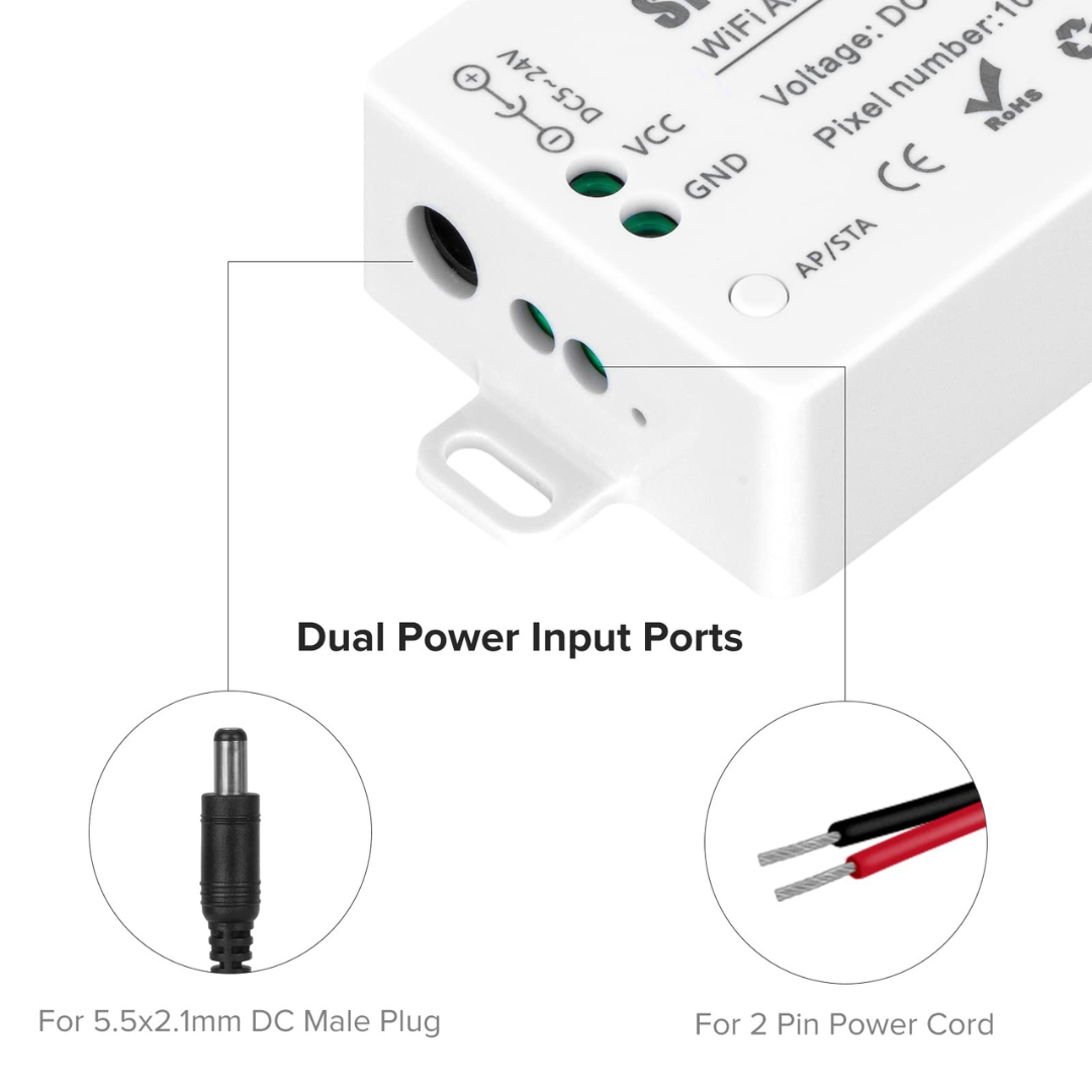 SP801E for WS2812B WS2811 LED WiFi Controller, iOS Android App Control SK6812 WS2815 Digital One-Wire RZ Code LED Driver IC RGB LED Strip LED Matrix Panel Module Light AP/STA Mode - DC 5V~24V