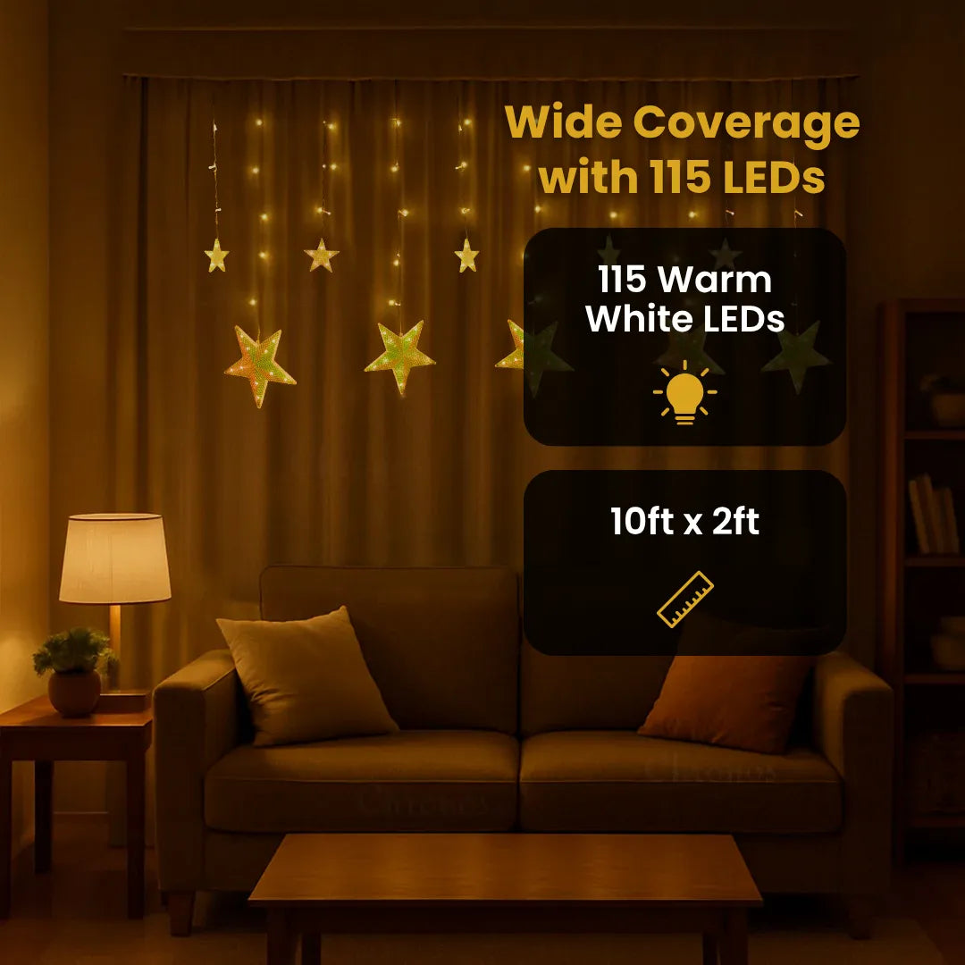 Premium Star Curtain String Lights | Warm White LED | 3M Width | 115 LEDs