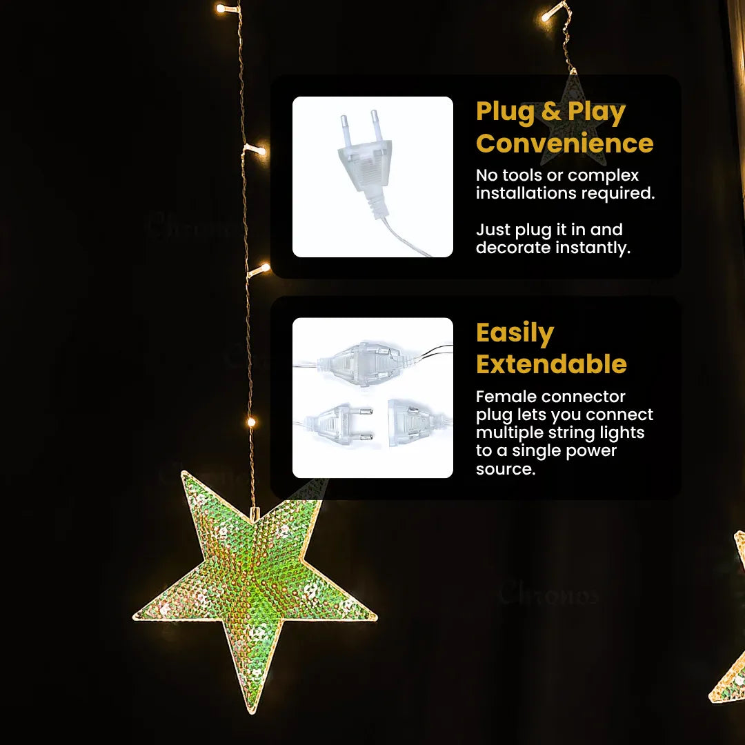 Premium Star Curtain String Lights- 3M | Warm White LED